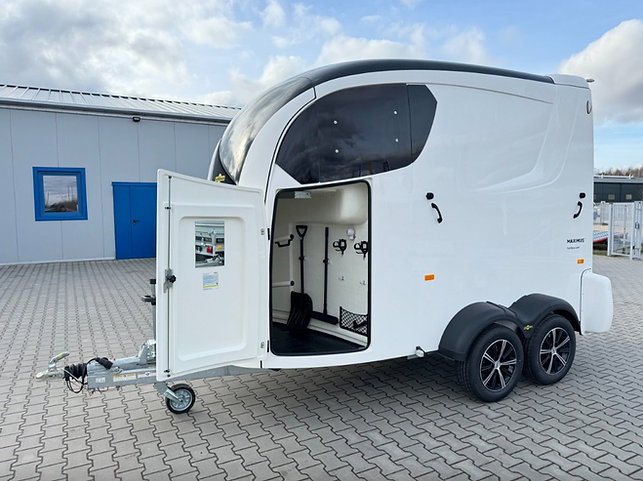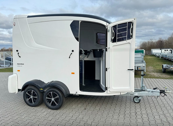 La Remorque Humbaur Maximus 2700 avec Sellerie, Portes Latérales et Toit Ouvrant est la référence en matière de transport de chevaux premium. Sa conception entièrement en résine polyester, son châssis EquiDrive® PLUS et son système de sécurité EquiGuard® garantissent confort, stabilité et sécurité maximale, même sur de longues distances.