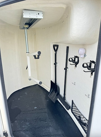 Éclairage intérieur : lampe permanente dans l’espace chevaux et lampe amovible avec détecteur de mouvement dans la sellerie