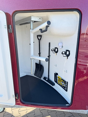 Éclairage intérieur : lampe permanente dans l’espace chevaux et lampe amovible avec détecteur de mouvement dans la sellerie